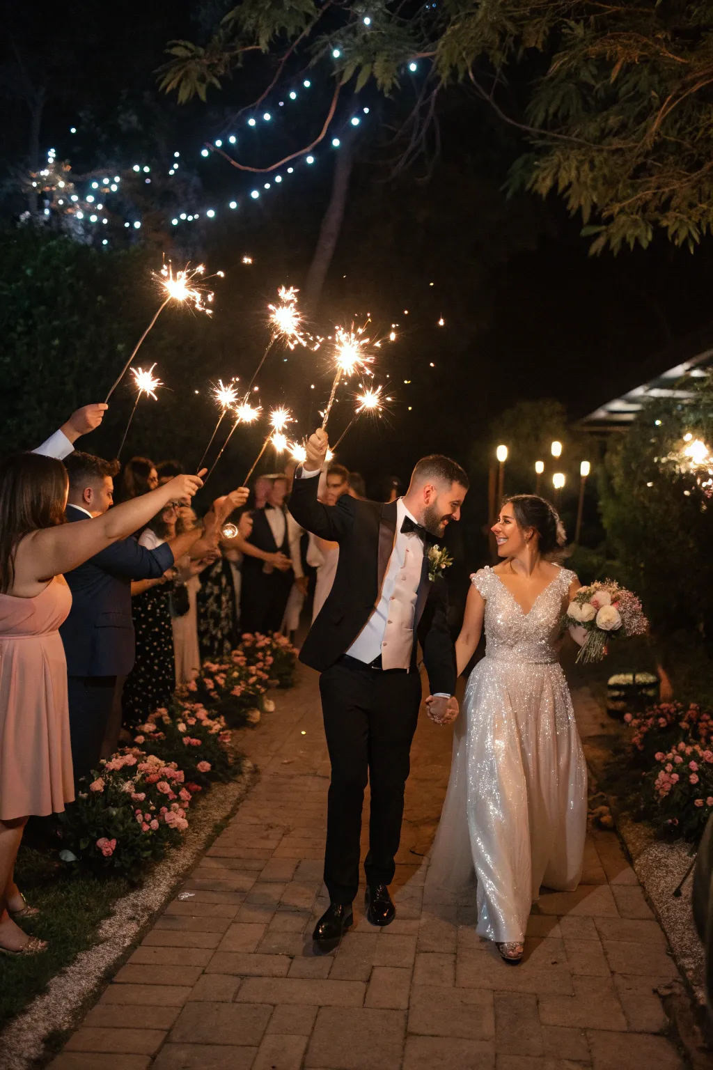 Employ sparklers to conjure an awe-inspiring farewell event. It stands as a straightforward yet potent method to etch your grand exit into memory, offering universal joy to participating guests.