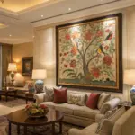 • Gilded Foliage Decor: Elevate your living room’s charm with an impressive gilded foliage decor, serving as a captivating centerpiece.
