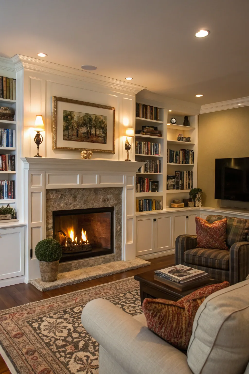 Think about adding built-in shelves around your fireplace for a seamless look. This one idea was a game-changer in my last project, providing both sophistication and extra storage.