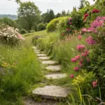 Fashion your own stepping stones incorporating playful forms or patterns. I’ve crafted several, and they inject an eccentric feel to my trail.