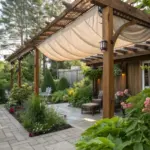 • Ornamental Patio Awning featuring Hanging Details: Bestow charm via a decorative awning showcasing lovely hanging details. Refresh your area immediately!