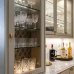 Establish a stunning display through backlit panels behind your boards. I adore how the light accentuates the hues of my spirit bottles, rendering it a focal attraction. The impact is visually arresting.