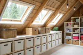 Optimize your loft using clever storage alternatives that maintain order. In my endeavors, I’ve employed integrated shelving and inventive storage corners to capitalize on every bit of space.