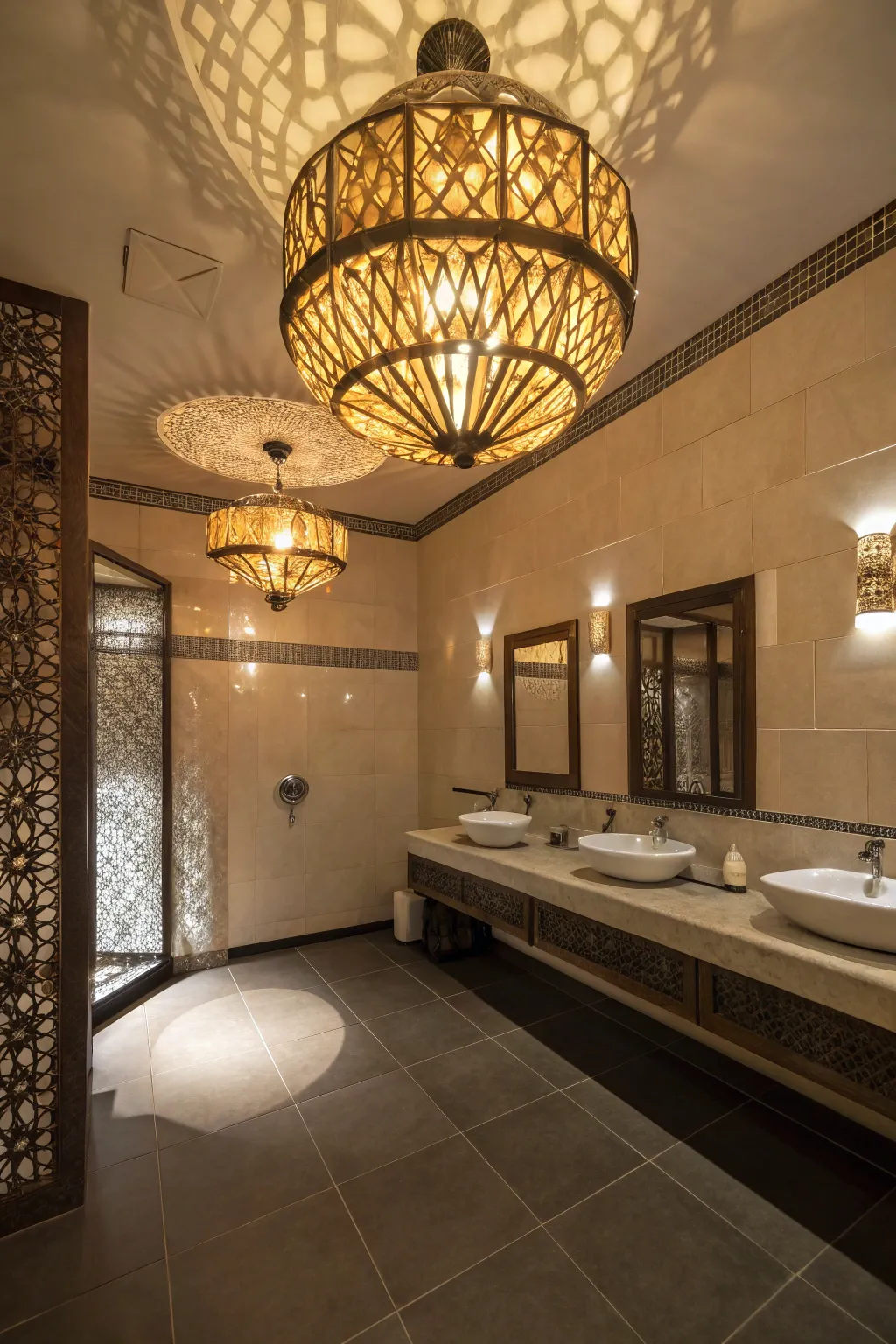 • Ornate Metal Chandelier: Refashion your bathroom with a metal chandelier that delivers a classic and opulent atmosphere.