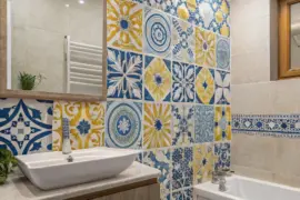 • Colorful Wall Tiles: Change your bathroom using colorful tiles that add a pop of personality.