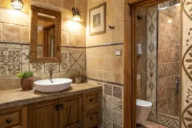• Wall Shelving Units: Add charm and function using shelves, perfect for displaying towels and decor.