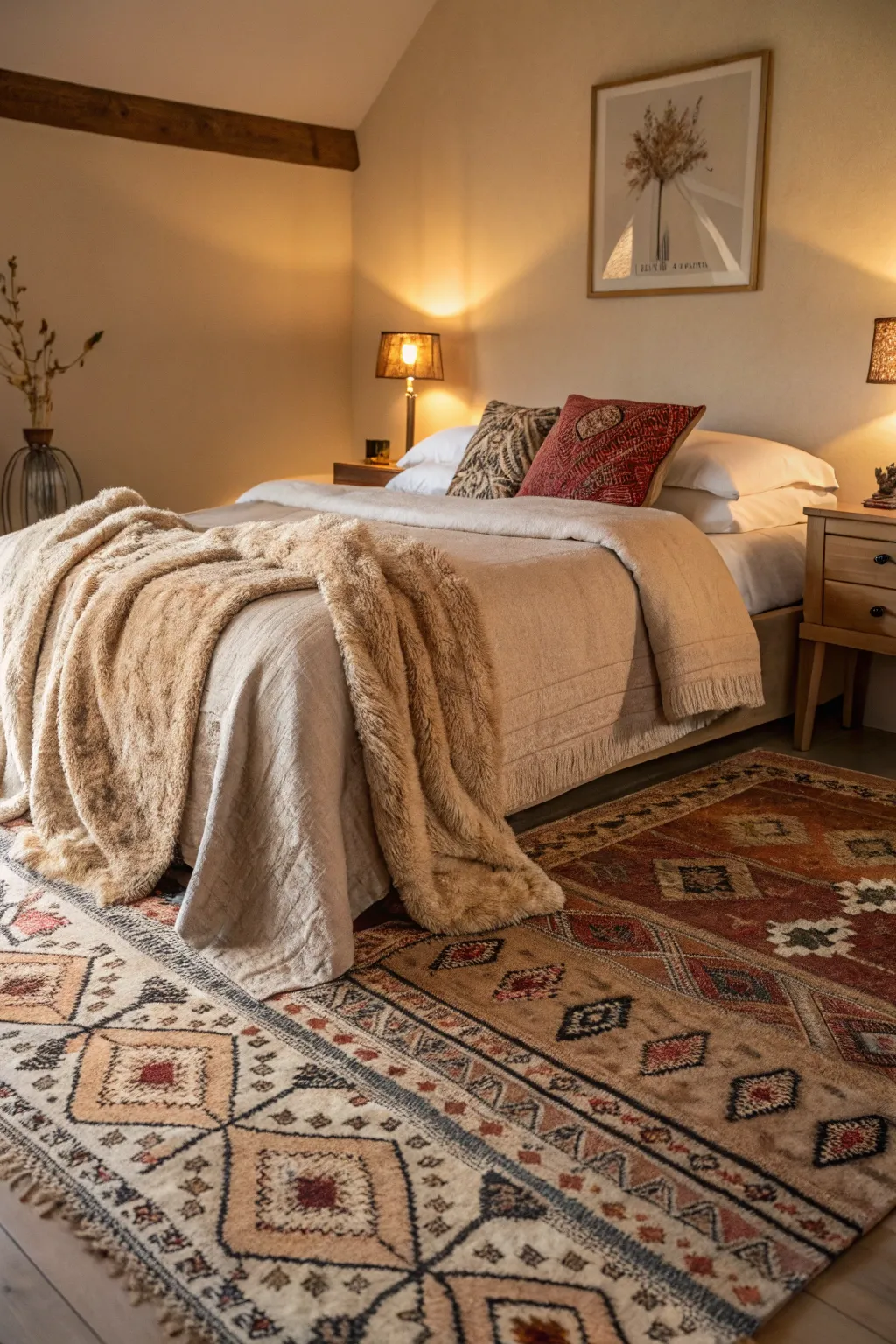 Use layers of textural fabrics, such as soft throws and patterned rugs, to add warmth and flair. I love using this to make rooms feel both cozy and sophisticated.