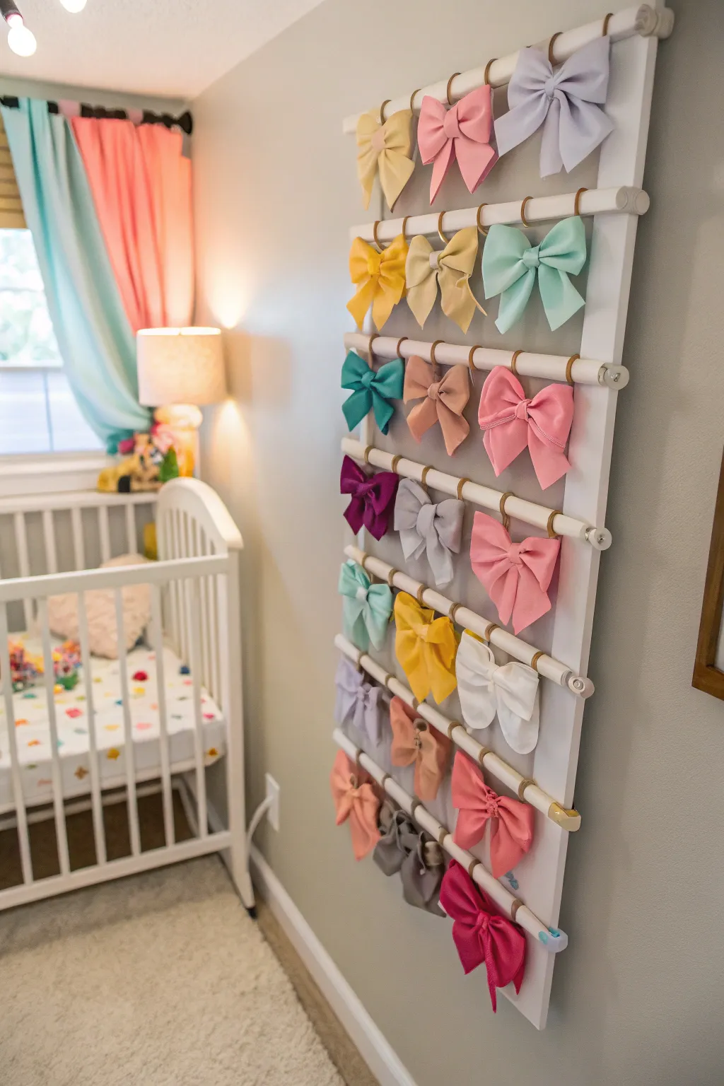 - Vivid Pegboard Hooks: Incorporate vibrant hooks to exhibit hair accessories. Fashion a chromatic composition your infant shall adore!