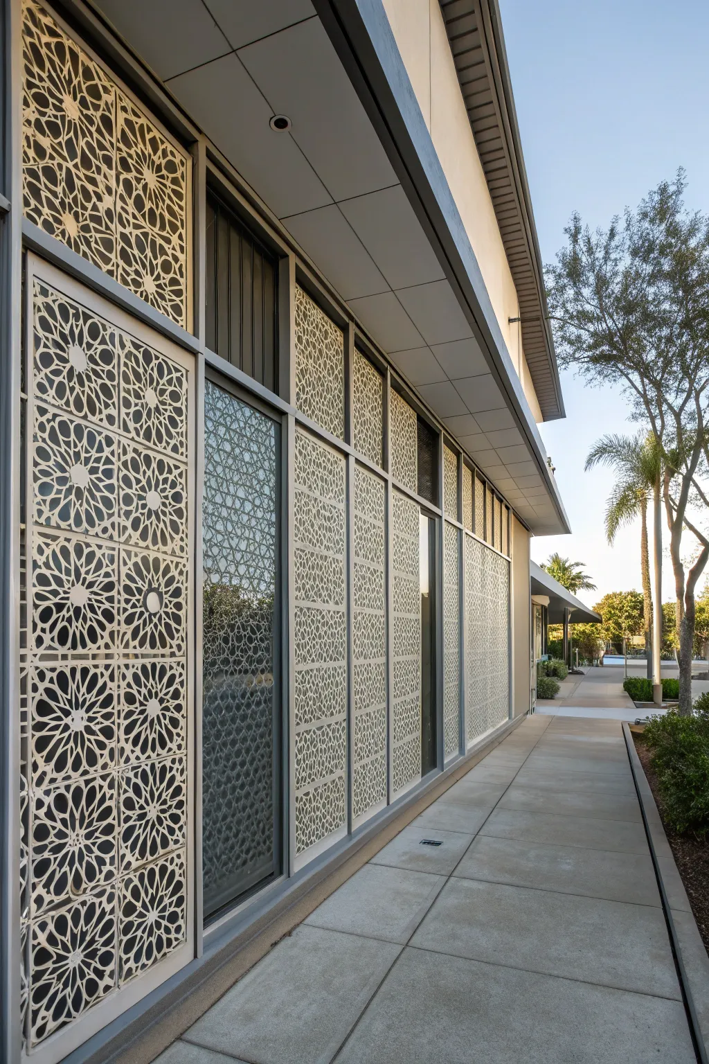 - Ornamental Punched Screens: Add dynamic flair to facades utilizing ornamental punched screens for a modern, edgy appeal.