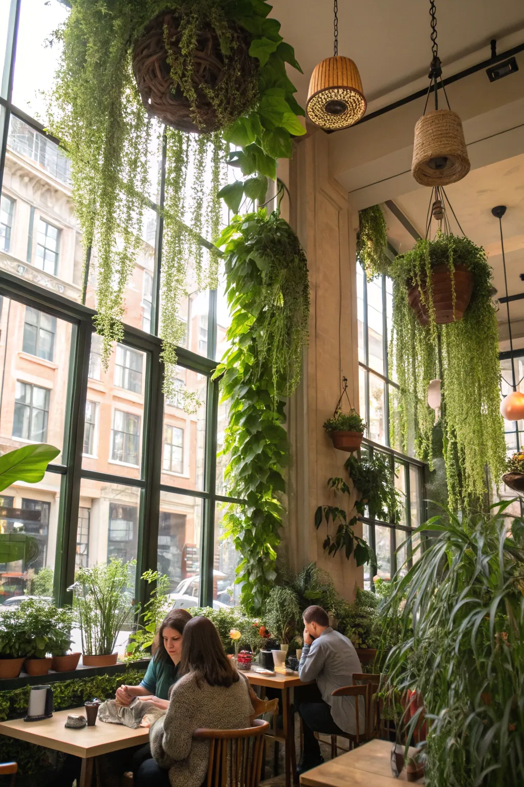 • Suspended Floral Baskets: Amplify your café’s feel with chic suspended planters, introducing a hint of verdure overhead.