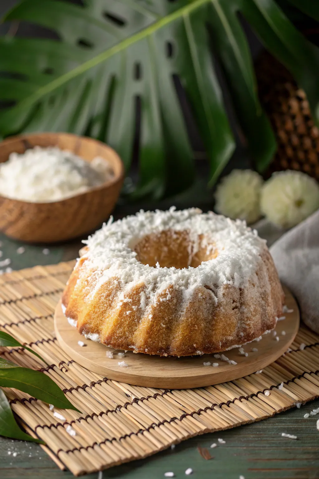 For a taste of paradise, cloak your ring cake with shredded coco. I’m enamored with how the coco imparts both a distinctive flavor and a snow-kissed visual appeal.
