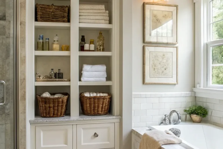 Creating a warm and inviting guest bathroom is like setting up a welcoming oasis for your visitors. With a few strategic decor moves, you can transform this space into a memorable retreat. Install Innovative Storage Solutions A guest bathroom with innovative storage solutions, featuring built-in shelves. Creative storage solutions like built-in shelves can keep your bathroom organized and stylish. I love using hidden storage to maintain a clean look. A few choices to try: Floating…