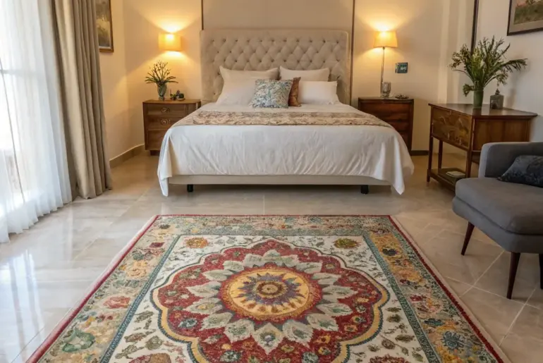 An area rug can truly complete your bedroom, turning your personal space into a haven of relaxation and sophistication. Whether you desire ultimate comfort or a striking design element, I’ve gathered some rug ideas to satisfy every preference. Dramatic Contrast Dark rugs provide striking contrast and sophistication. A dark rug makes a great contrast in a light bedroom. It keeps the space steady and brings an element of class. A few relevant products: NightFall Plush…