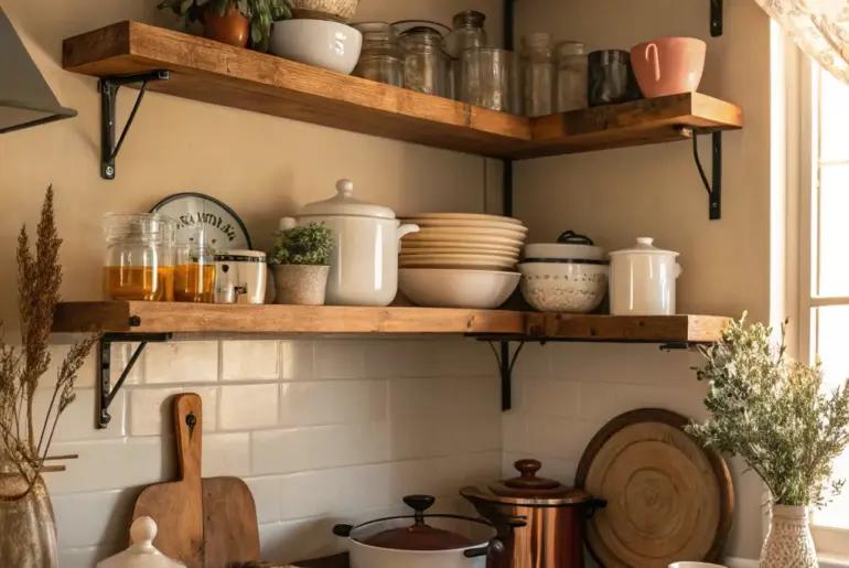 Crafting an inviting farmhouse kitchen is about weaving together homespun appeal and sophisticated practicality. Let’s uncover some lovely ideas to infuse that cozy farmhouse ambiance into your kitchen worktops. Using Timber Platters for Earthy Appeal A timber platter gracefully arranging kitchen basics on a farmhouse counter. I’m a huge fan of using timber platters to arrange and showcase must-have kitchen items. They bring a welcoming, countryside vibe and are ideal for keeping things in order.…