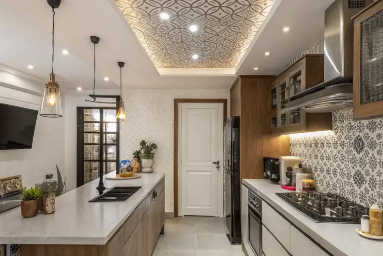 Often unnoticed, the kitchen ceiling is a powerful canvas ripe with opportunities to redefine your space. Let’s uncover some extraordinary concepts that promise to transform your kitchen ceiling from the mundane to the magnificent. Dynamic Suspended Overheads Unite practicality and panache with a suspended overhead. Suspended ceilings proffer pragmatic advantages while injecting a modern flair. They adeptly conceal wiring and ductwork, simultaneously enabling ingenious lighting resolutions. A few things you might like: Sunken Diode Overhead…