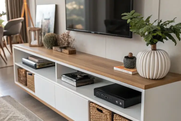Turning your TV stand into a focal point can dramatically uplift your living area. Let’s explore some stunning concepts that will make it the room’s centerpiece! Material Contrast Mixed materials like wood, metal, and glass on a TV console. Mixing organic materials and sleek elements builds visual interest. This technique keeps things exciting without cluttering the look. A few suggestions: Refined Glass Containers: Highlight your stand with refined containers, adding an element of sophisticated charm.…