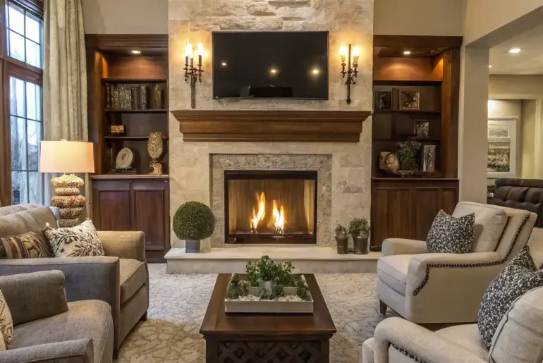 A fireplace transcends mere utility; it’s the emotional core of your living space. Let’s delve into how you can reimagine this essential feature into a breathtaking centerpiece with creative refacing ideas. In-built Display Charm Built-in shelves add charm and practicality to your fireplace. Augment practicality and visual appeal with built-in shelves encircling your fireplace. I’m fond of integrating shelves for literary works and décor, cultivating an intimate library ambiance. A few helpful options: Surface Light…