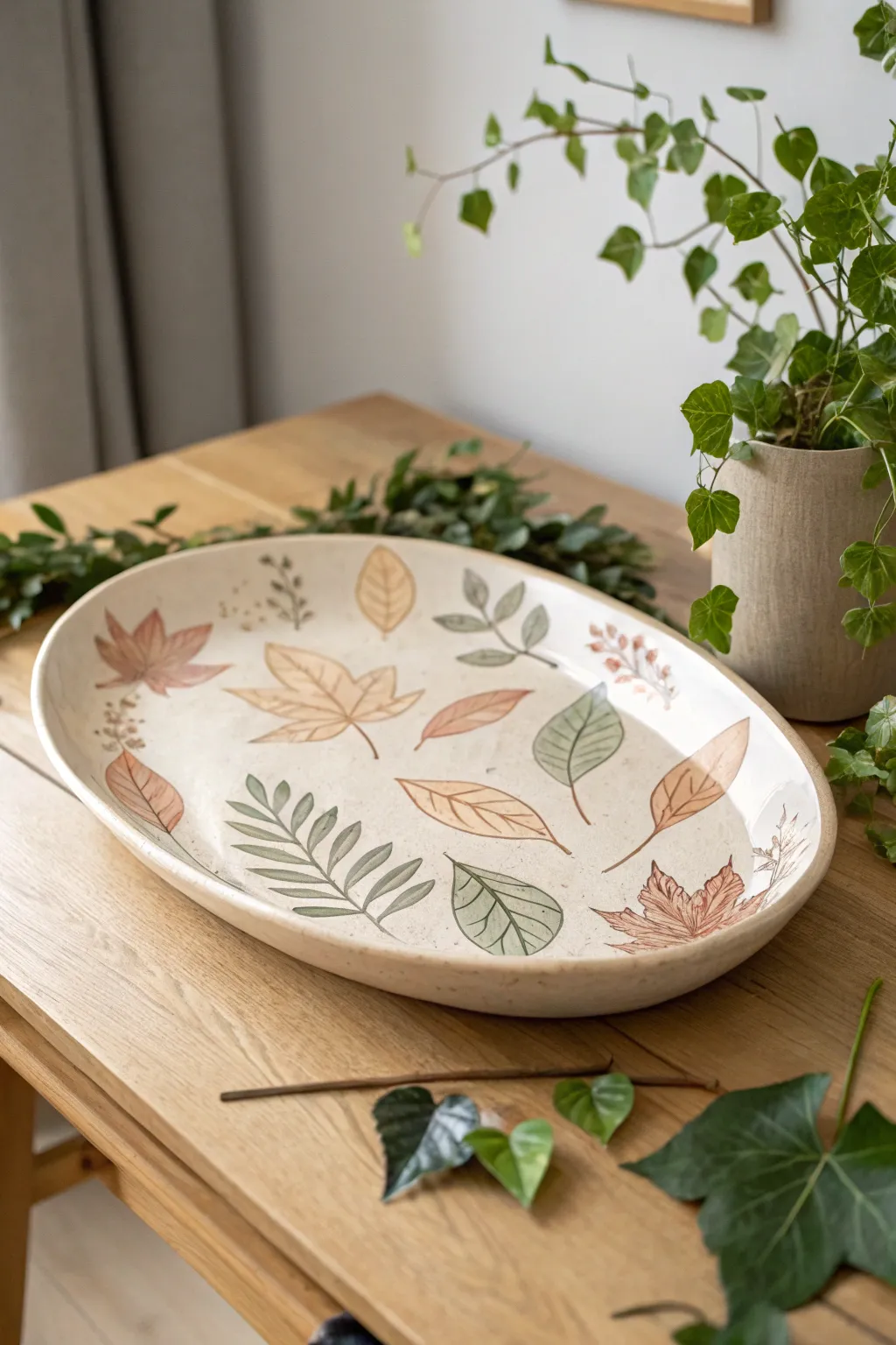 - Autumnal Foliage Porcelain Platter: Augment your fall table embellishments with a fashionable porcelain platter showcasing refined autumnal foliage motifs.