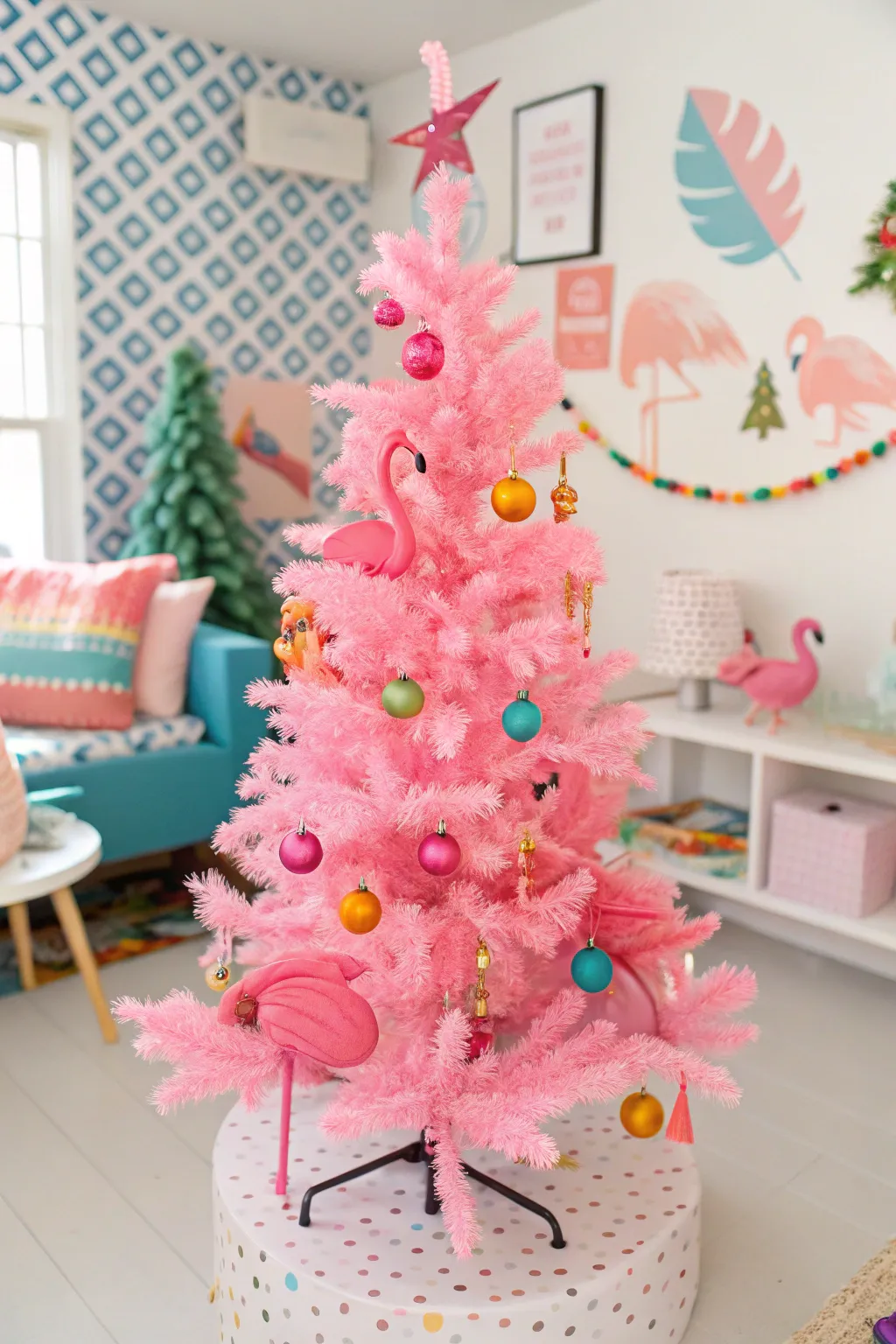For an eccentric spin, incorporate flamingo decorations into your rose-colored tree. This surprise detail injects a lighthearted vibe that visitors will cherish.