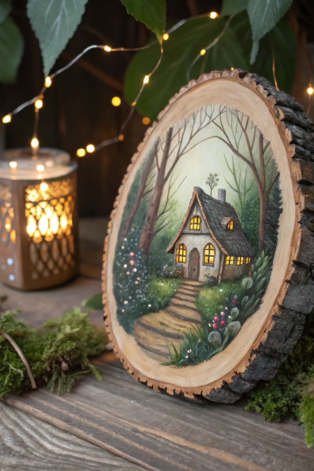 Craft enchanting scenes right from a storybook. Just picture a small cottage in the woods on a wood circle; it can take you to a magical world.