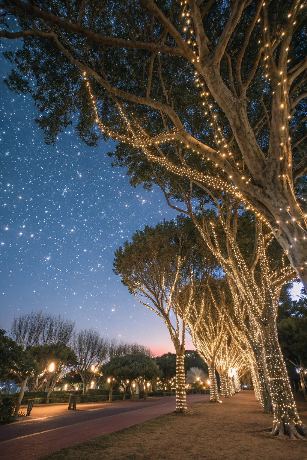 • Soft Glow Light Strands: Bathe your trees in soft light strands for a tranquil, magical outdoor setting.