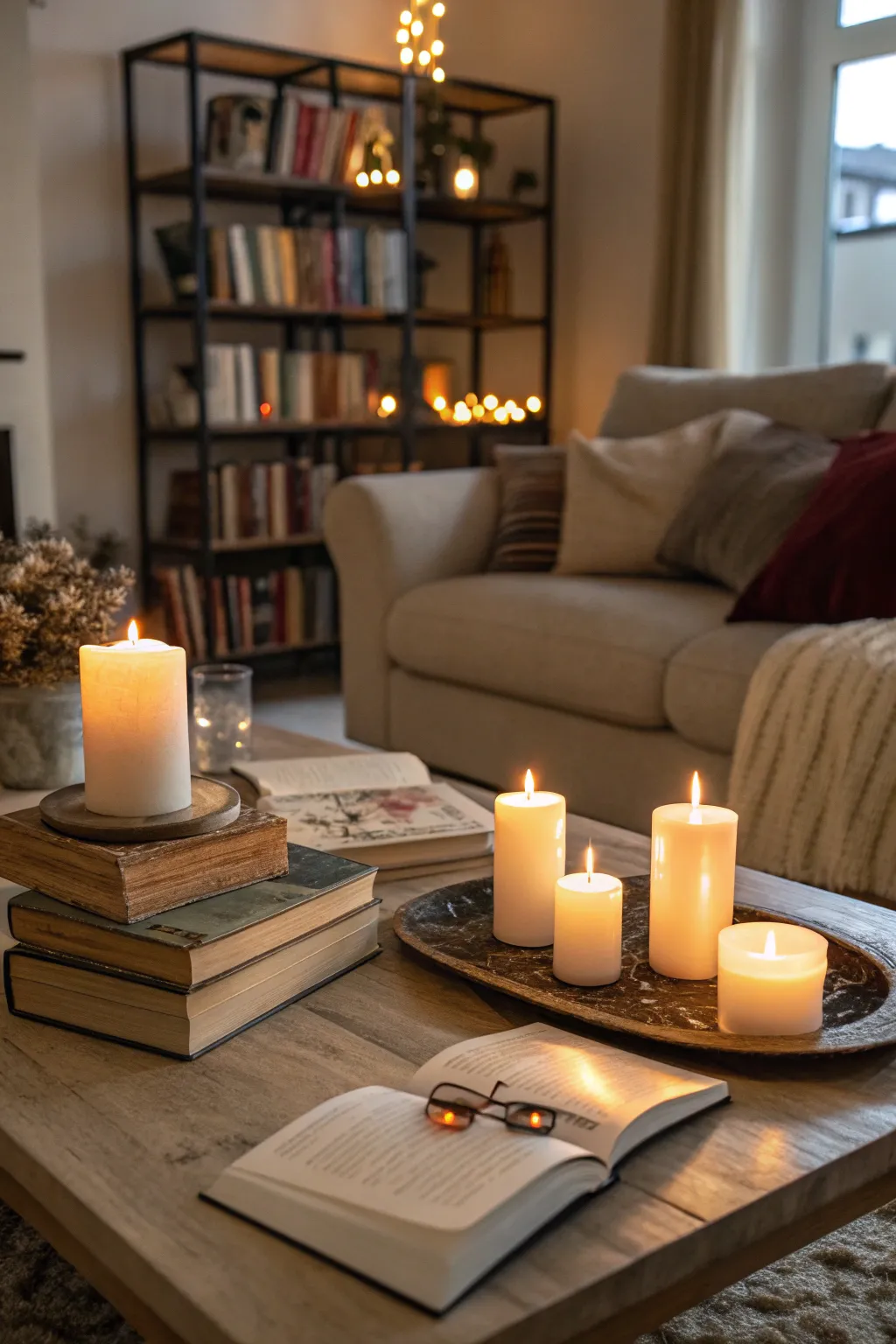 Arrange scented sticks, books, and periodicals for those intimate details, these accents can transform a room into a snug haven.