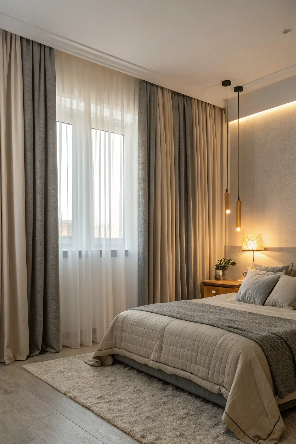 - Modern Two-Tone Curtains: Revamp compact spaces using modern two-tone curtains that contribute height and grace.