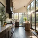 Expansive windows or glass doors can saturate your kitchen with natural light, counterbalancing the darker shades. It’s a design choice I advocate for due to its capacity to expand the area.