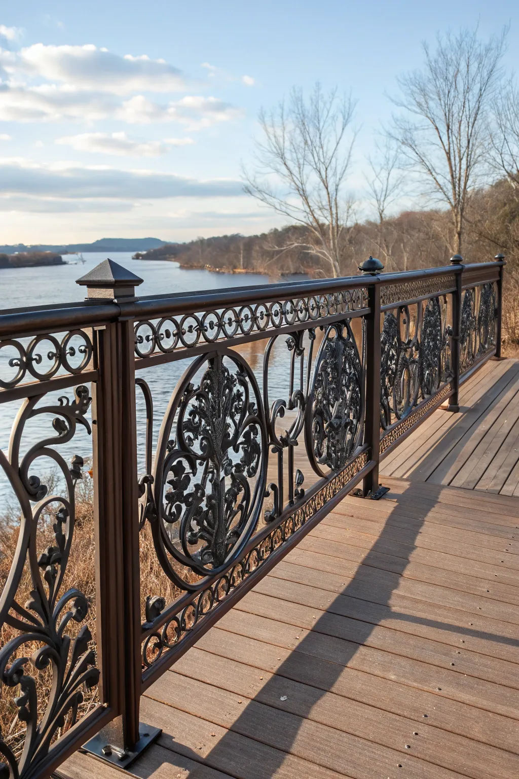 - Fancy Wrought Iron Railing: Contribute artistic flair to your deck using these fancy wrought iron railing pieces.