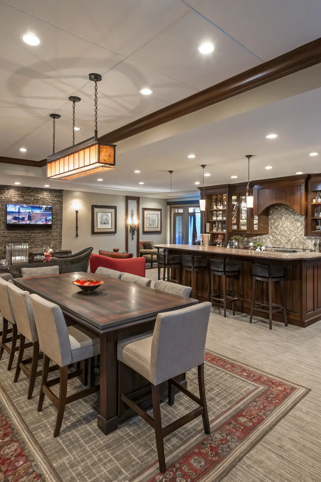 Design an adaptable space that accommodates both dining and bar functions. This strategy optimizes use and makes the area more vibrant.