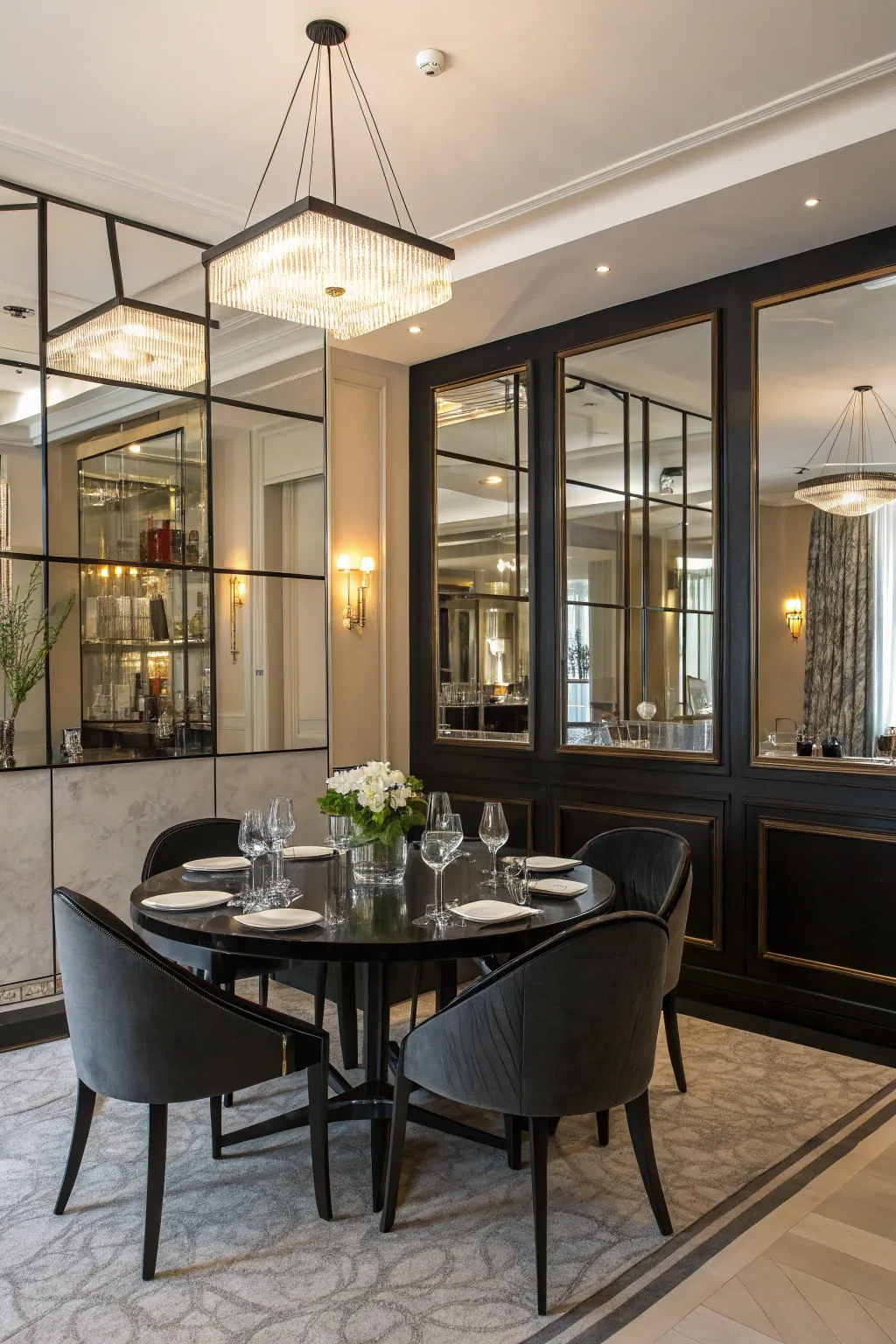 Incorporate mirrors or mirrored accessories to reflect light and introduce spaciousness. This is ideal for smaller dining spaces where you want to avoid feeling cramped.