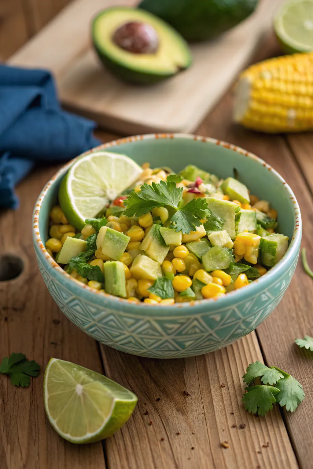 Mix tender corn kernels with creamy avocado and a squeeze of lime for a refreshing corn and avocado fiesta. This vibrant dish is a hit at my summer barbecues.