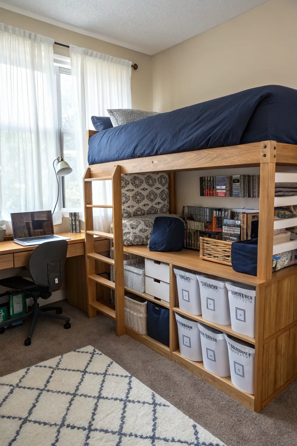Stylish storage solutions keep your dorm tidy and cohesive.