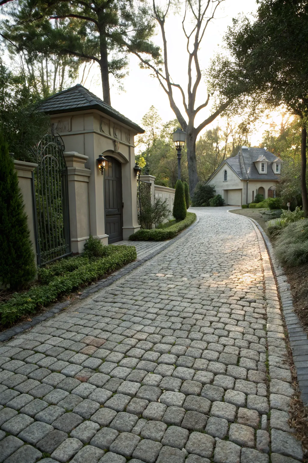 Set stone driveways radiate enduring allure and suit historic properties beautifully. I’m enamored by their enduring charm.