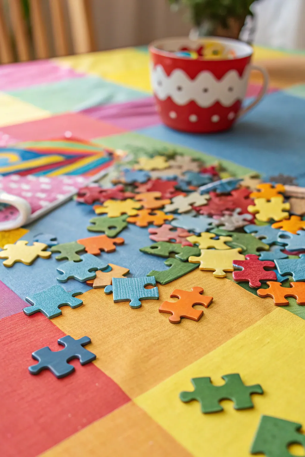 Dismantle a small jigsaw puzzle and stash a few pieces in each egg for a stimulating challenge. It fills me with happiness to see the children collaborate, piecing the puzzle back together!