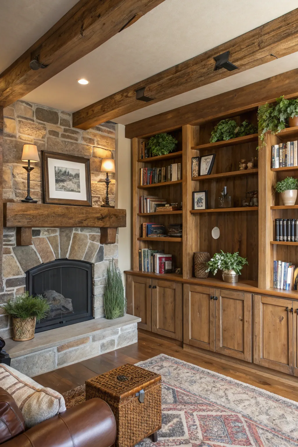 - Stone Highlight Fireplace Surround: Enhance your fireplace with a surround that merges rustic stone and sleek finishes for a delightful contrast.