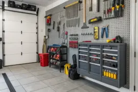 Try an industrial-style epoxy floor with metallic finishes for a polished, contemporary aesthetic. It’s a striking option that gives refinement and character.