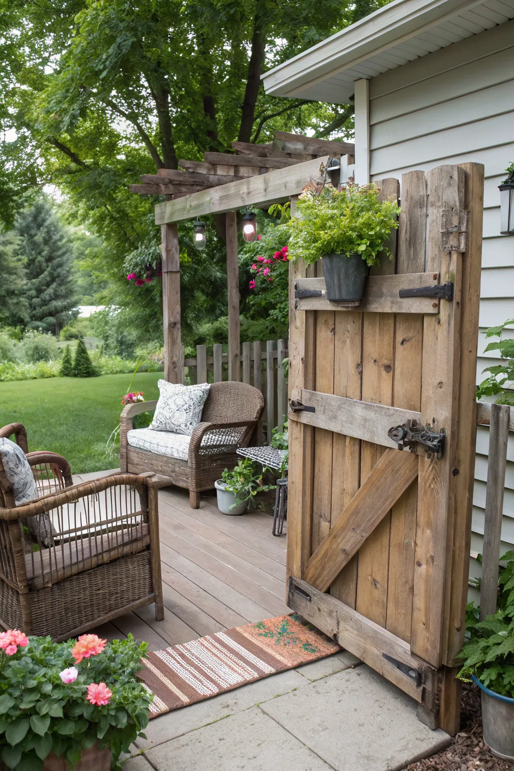 Try building a gate out of pallet wood for a project that is affordable. It’s a fun do-it-yourself project that gives your porch a charming, rustic feel.