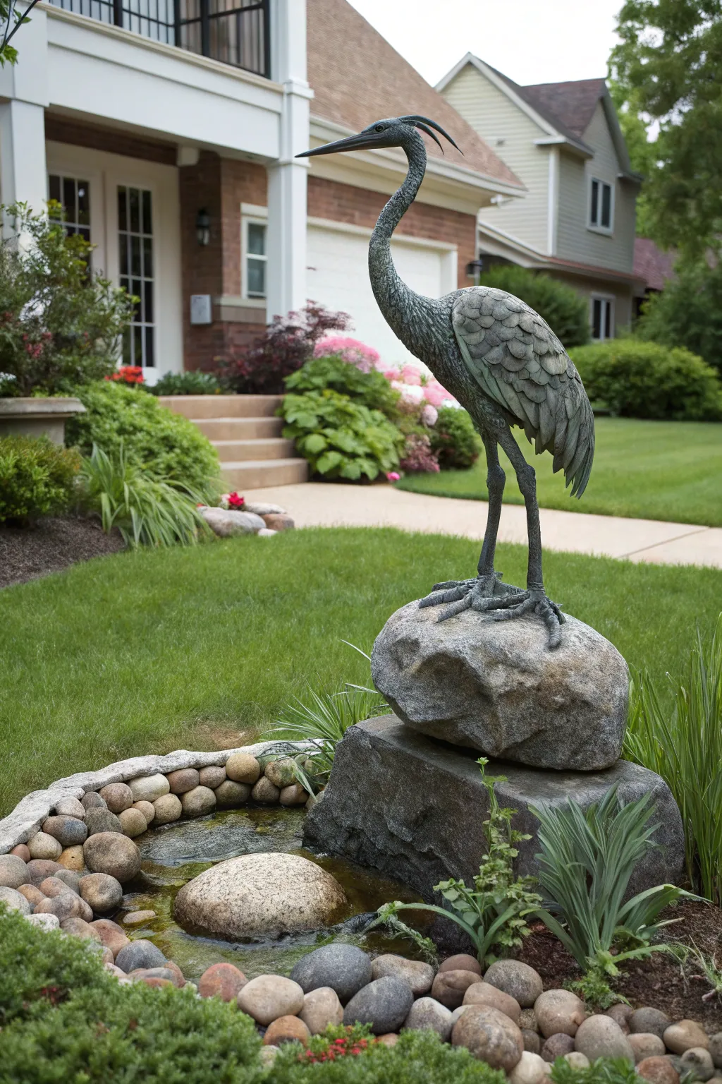 - Exterior Metal Crane Garden Art: Boost your garden’s sophistication through a metal crane sculpture for a striking artistic allure.