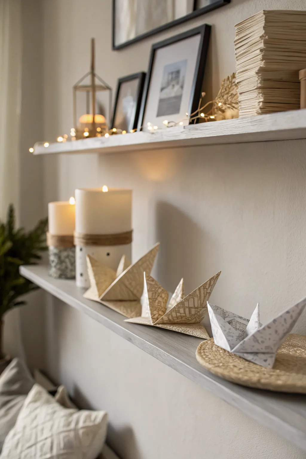 Design a display case with paper blossoms and meaningful mementos. It’s a beautiful method to display memories, and I adore how it adds depth to any wall.