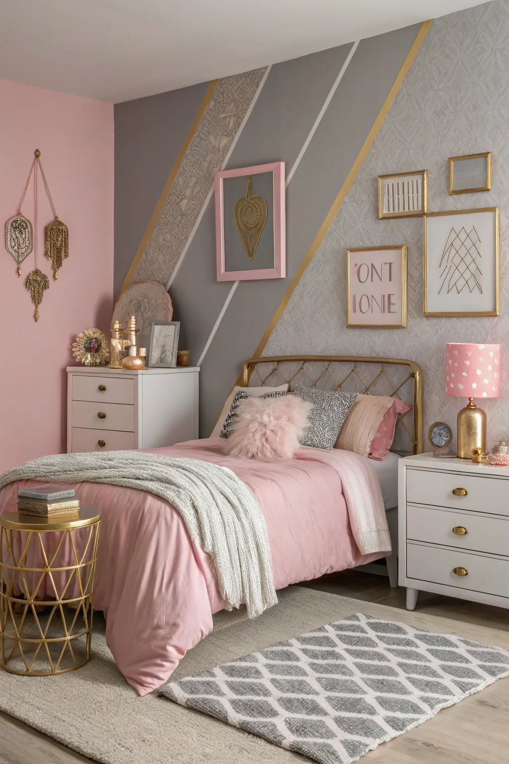 - Modern Rose and Cloud-Colored Geometric Wallpaper: Transform your bedroom with stylish geometric wallpaper, adding texture and visual appeal instantly.