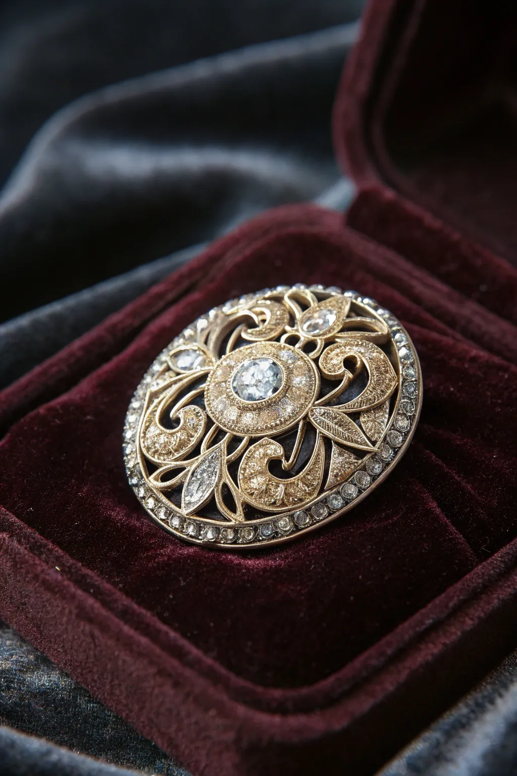 • Vintage-Inspired Brooch with Detailed Filigree Design: Introduce timeless elegance to your outfit with this exquisite vintage-inspired brooch—ideal for special occasions.