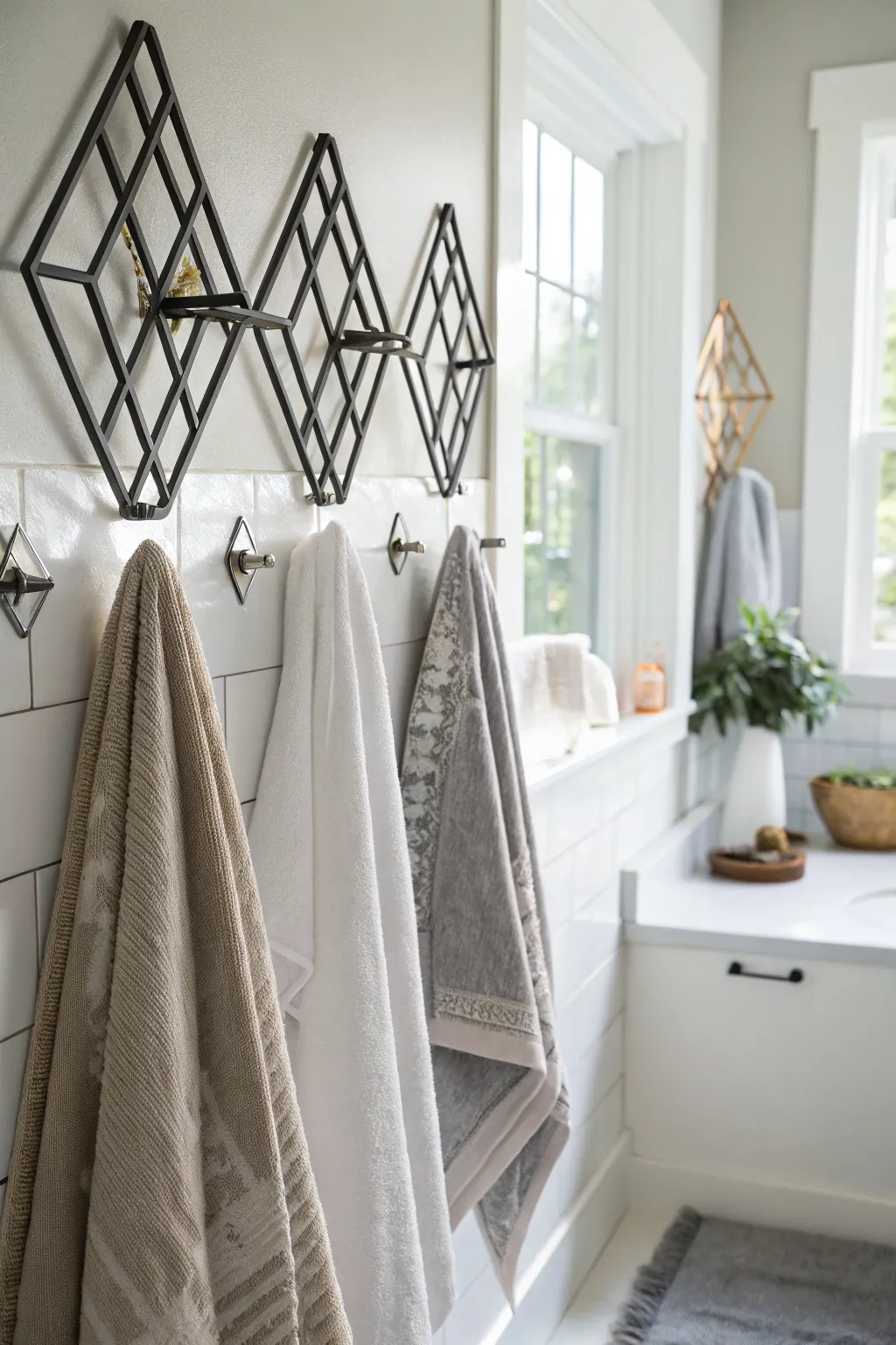 • Diamond-Shaped Wall Pegs: Elevate your area with diamond-shaped pegs for an elegant, contemporary vibe.