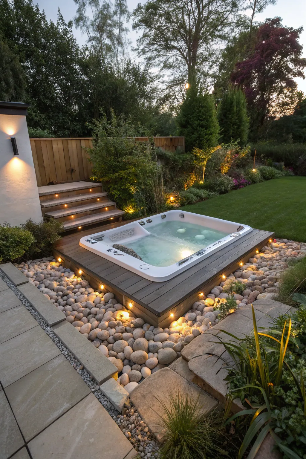 Consider a built-in spa for a fluid aesthetic that merges flawlessly with your platform or patio. This choice imparts a hint of class and permanence.