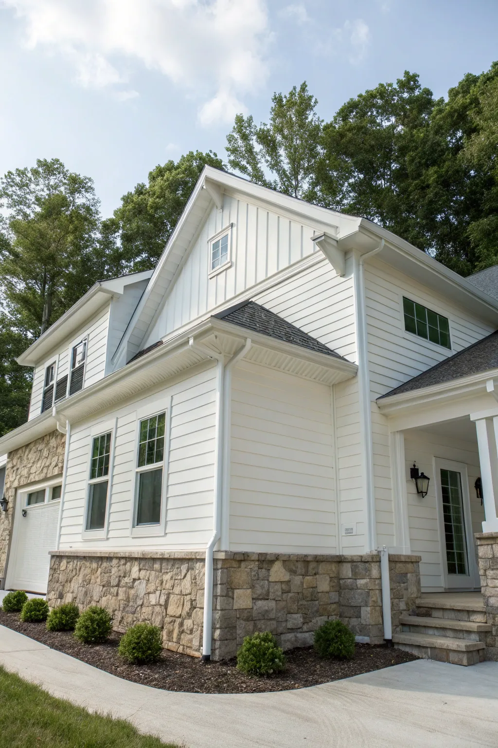 Unite white vinyl cladding with other substances like brick or stone for a spirited visual. This blend introduces texture and curiosity, much like I mix diverse flora to fashion a vibrant landscape.