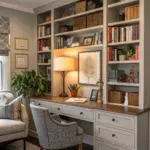 An aged hutch top transitions seamlessly into a chic library shelf simply by fastening it to the wall. I’ve personally utilized this in my workspace, which not only maximized the area but introduced a dash of sophistication.