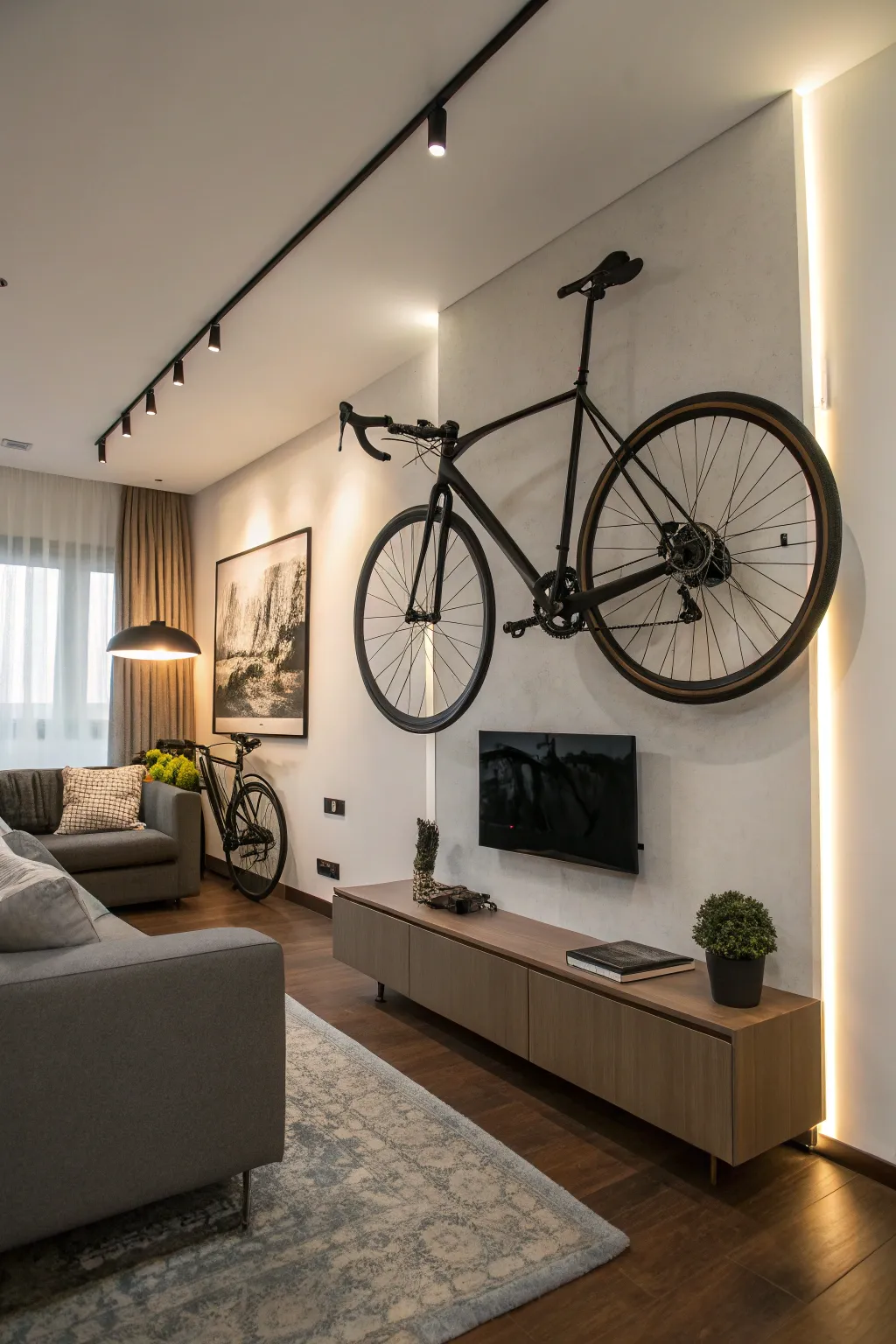 When you’re short on wall space, a vertical wall fixture can be a game-changer. I’m obsessed with how it transforms my bike into a piece of art, freeing up valuable floor space for other design elements.