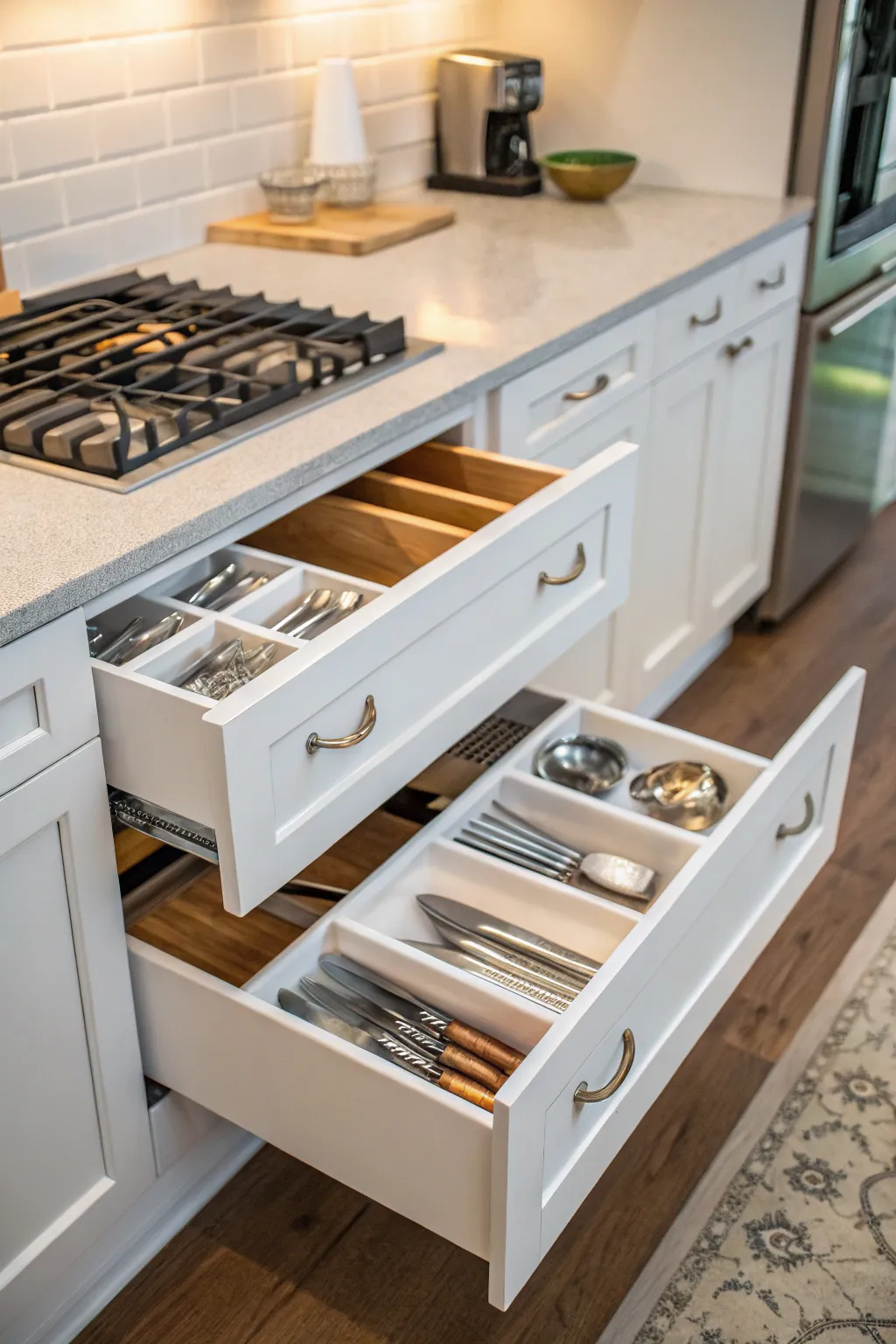 Nook drawers are an extraordinary fix that maximizes space through creative design. I’ve put them to work stashing utensils and maintaining a clutter-free kitchen.