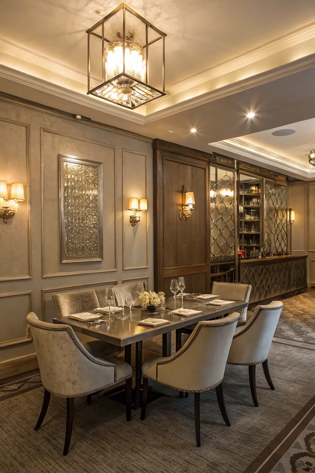 - Metallic Emphasize Glass: Enhance your dining area with a sleek metallic mirror, adding depth and sparkle to your space.