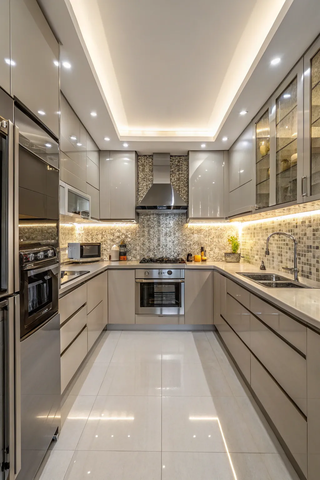 • Radiant Glass Panels: Fill your cooking area with brightness through these glossy panels for a spacious modern vibe.